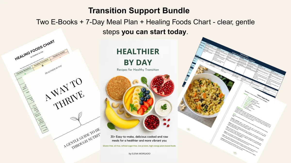 35+ plant-based, gluten-free, oil-free, refined sugar-free recipes, with clear preparation notes, ingredient benefits, and simple substitutions — structured around a 7-Day Meal Plan designed to gently carry you beyond one week and into everyday life.